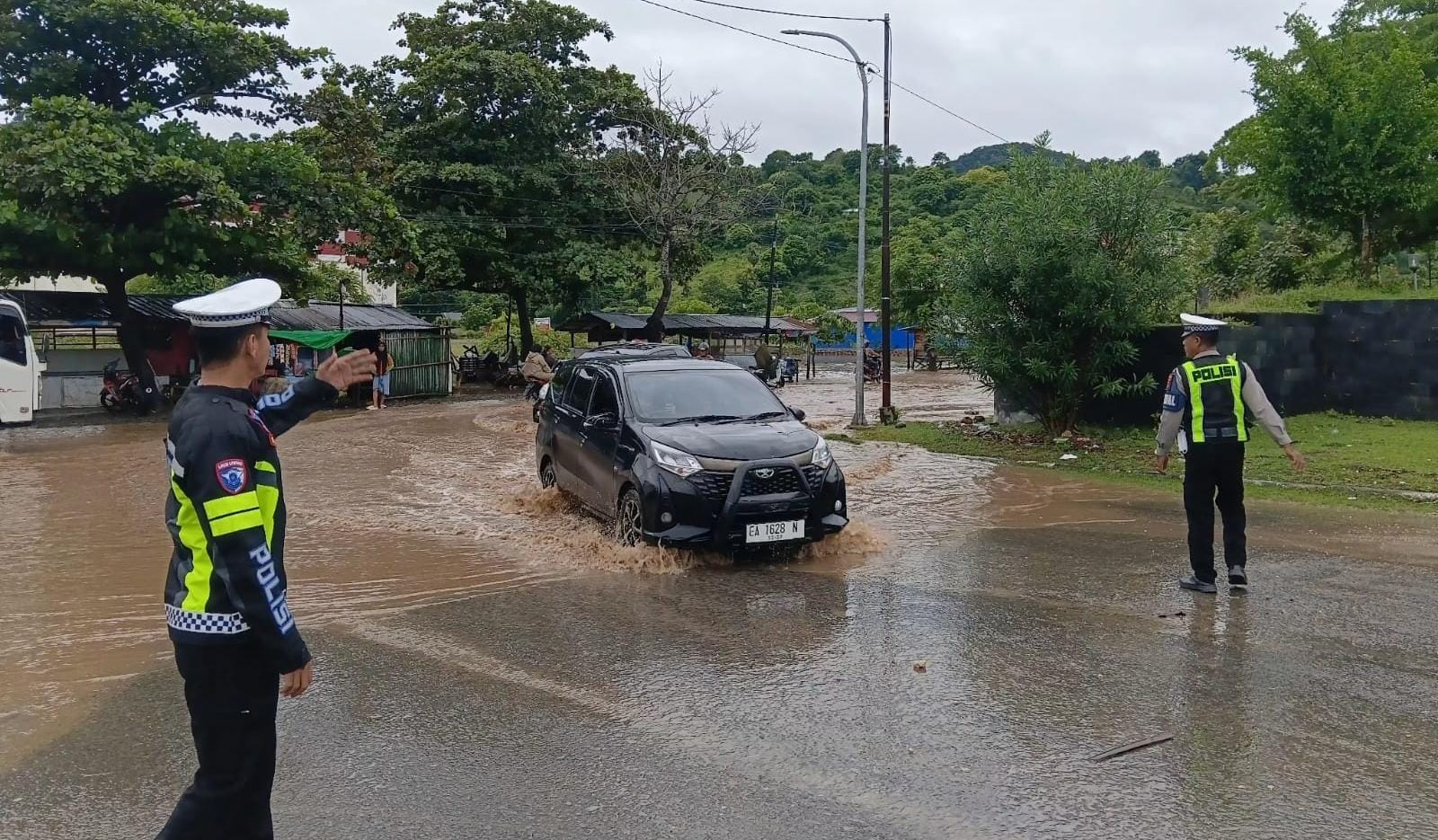 Untuk antisipasi Polres Bima Kabupaten menerjunkan Satuan Lalu Lintasnya guna melakukan pengamanan dan pengaturan lalu lintas dengan menempatkan personel di titik-titik yang dampak genangan air yg meluap ke pahu jalan rawan kecelakaan dan kepadatan.Selasa(24/02/26)Sore.