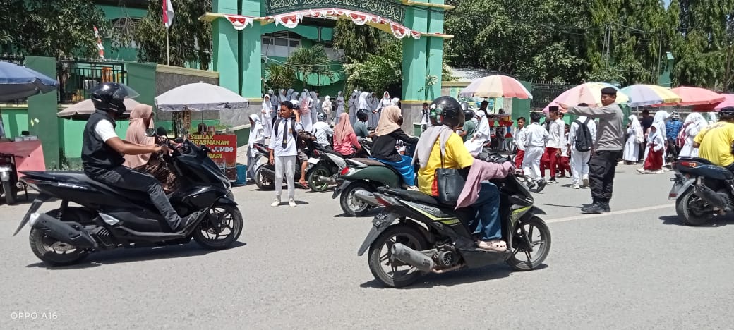 Personel Polsek Rasanae Barat Laksanakan Kegiatan Rawan Siang di Depan MTsN 1 Padolo