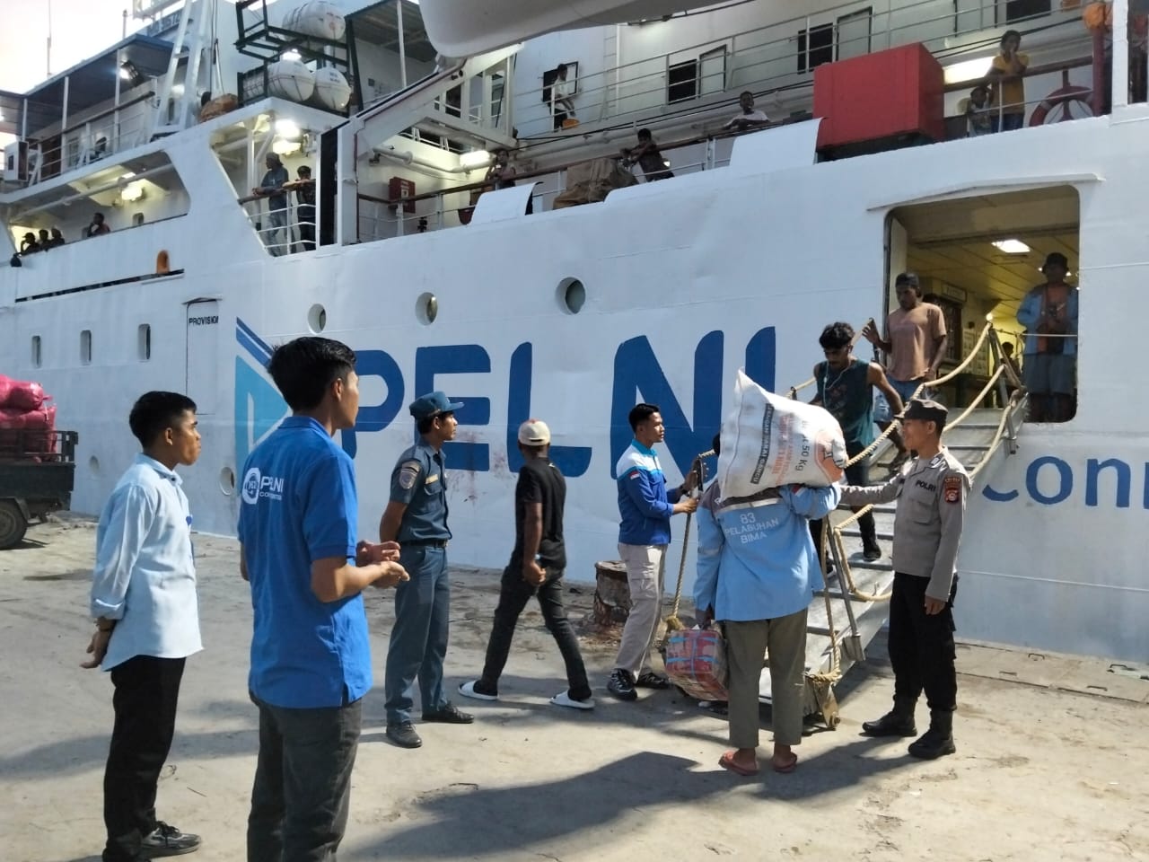 Polsek Kawasan Pelabuhan Laut Bima Amankan Kedatangan KM Wilis yang Lakukan Embarkasi dan Debarkasi Penumpang
