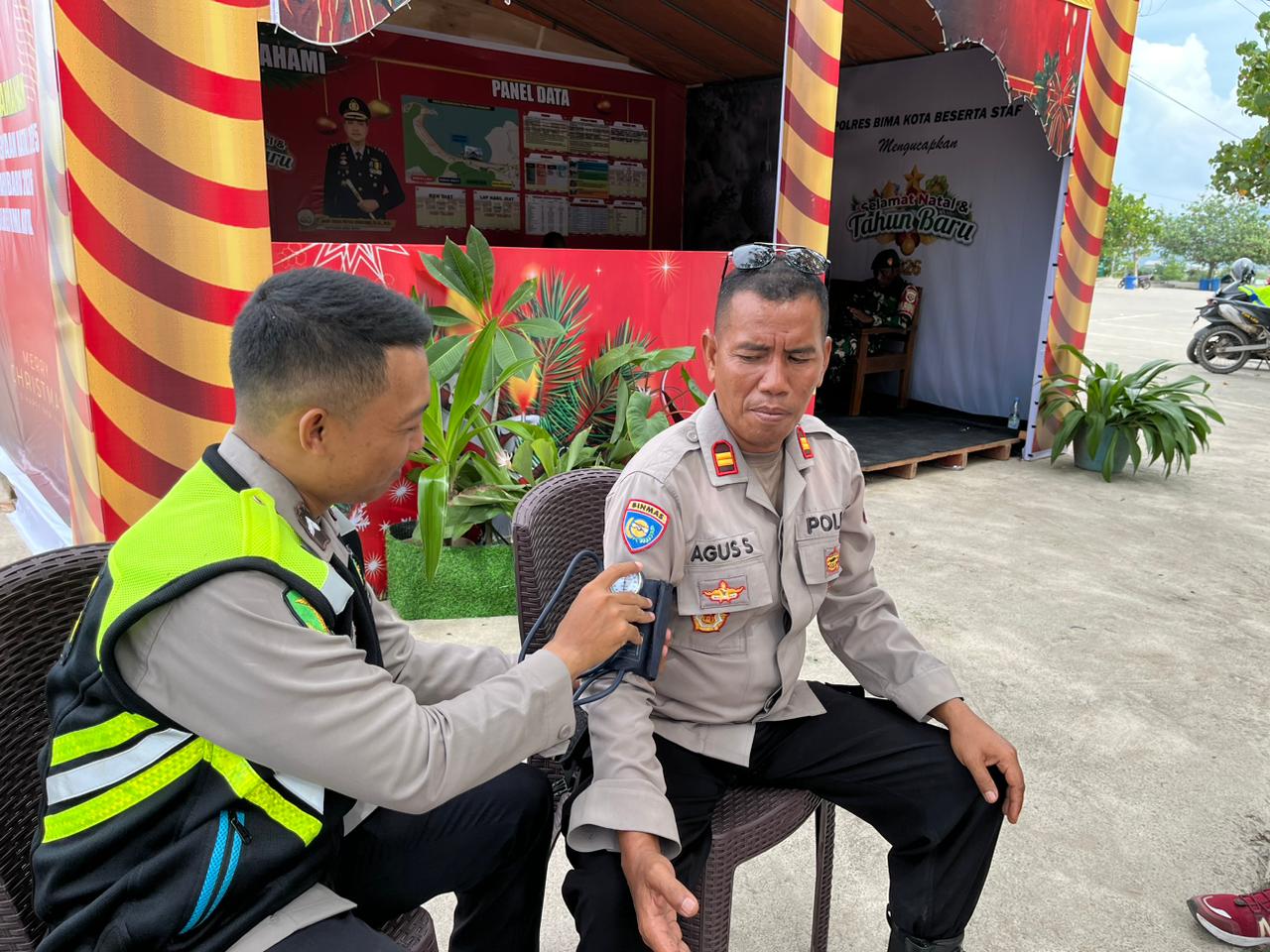 Kota Bima, NTB (27 Desember 2025) – Untuk memastikan kondisi kesehatan personel yang bertugas di Pos Pengamanan (Pos PAM) dan Pos Pelayanan (Pos Yan) selama pelaksanaan Operasi Lilin Rinjani 2025, Subsatgas Dokkes Polres Bima Kota secara rutin melaksanakan pengecekan kesehatan terhadap personel, Sabtu (27/12/2025).